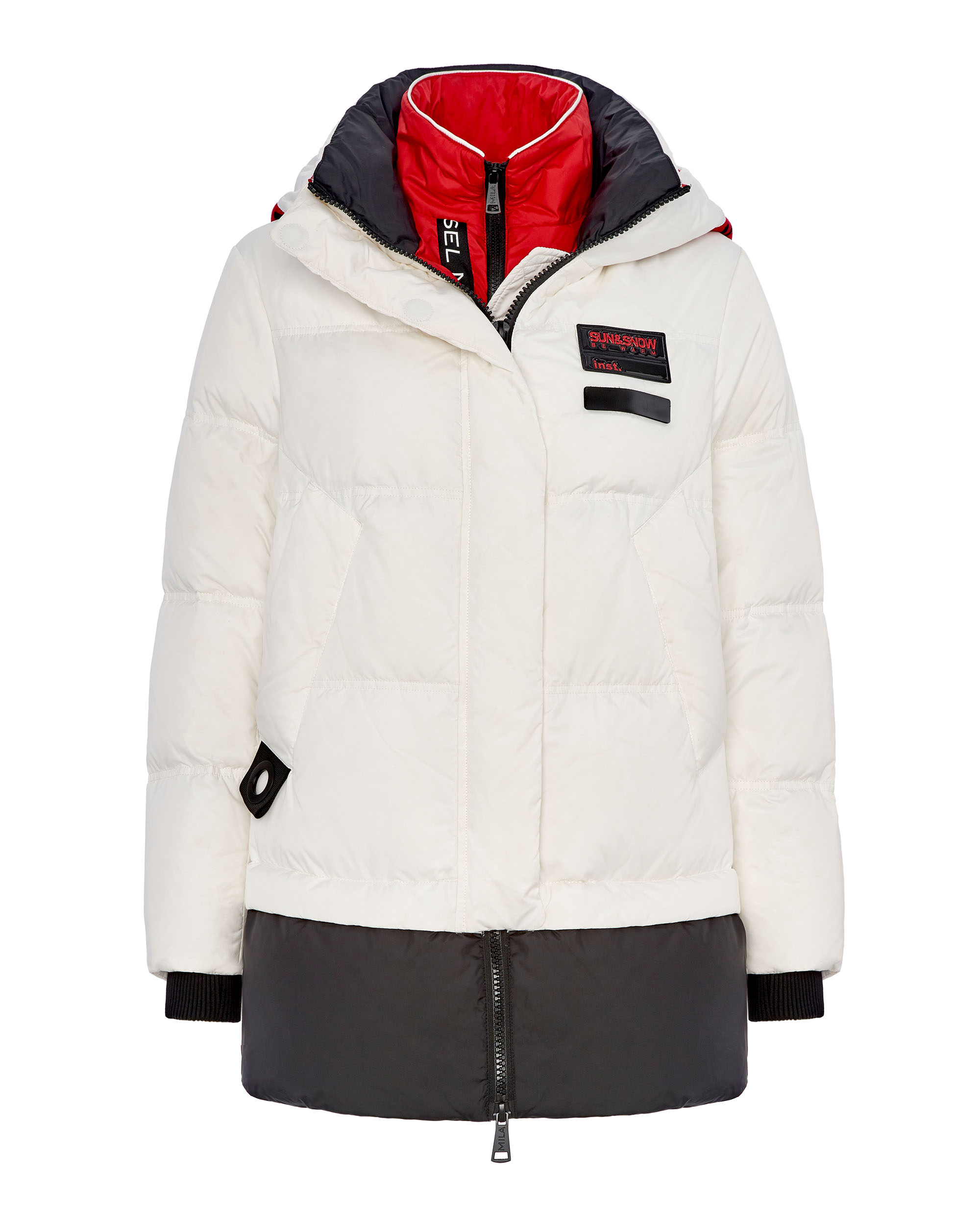 Эффектный пуховик входит в тематическую коллекцию «Москва». Белоснежный оттенок внешней стороны сочетается с ярко-красными акцентами, напоминая о главных цветах родной столицы. А броская надпись на капюшоне – еще один повод признаться в любви городу. Пуховик утеплен наполнителем из натурального селективного пуха и дополнен внутренней жилеткой на молнии, создающей дополнительный теплый слой.