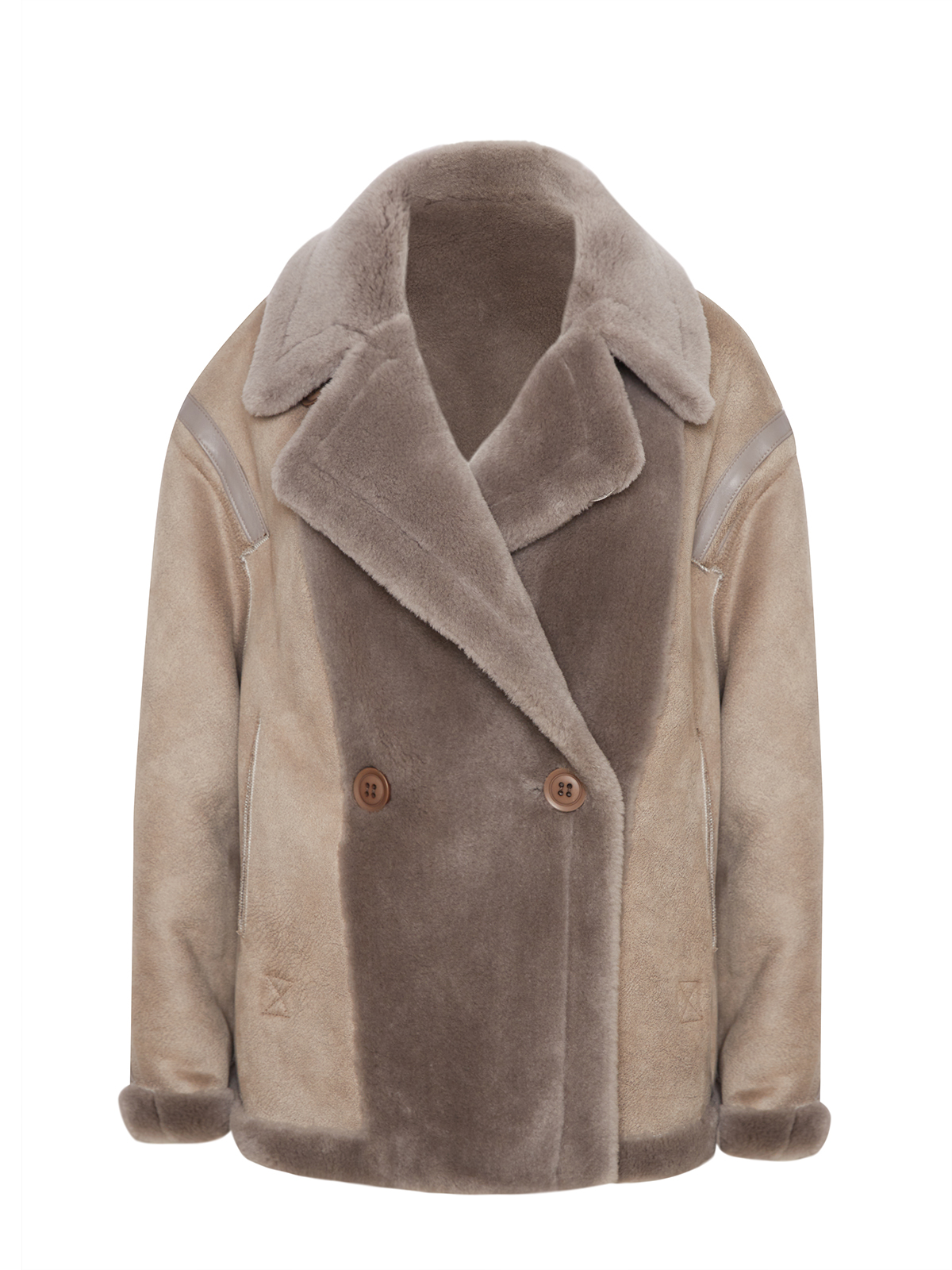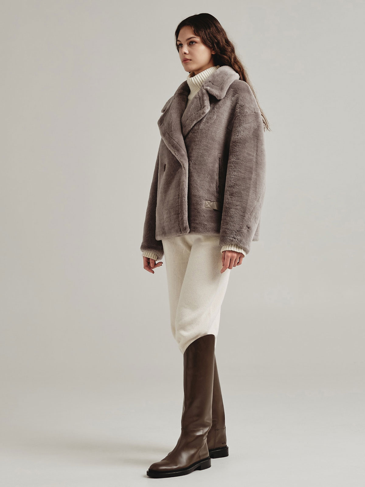 Модель «Наташа Ростова» премиальной коллекции Romanoff представляет собой фасон бомбера, выполненный в виде шубы из экомеха. Изделие является двусторонним и отличается своей функциональностью – с одной стороны оно выглядит как бомбер-дубленка, а с другой как укороченная шуба.