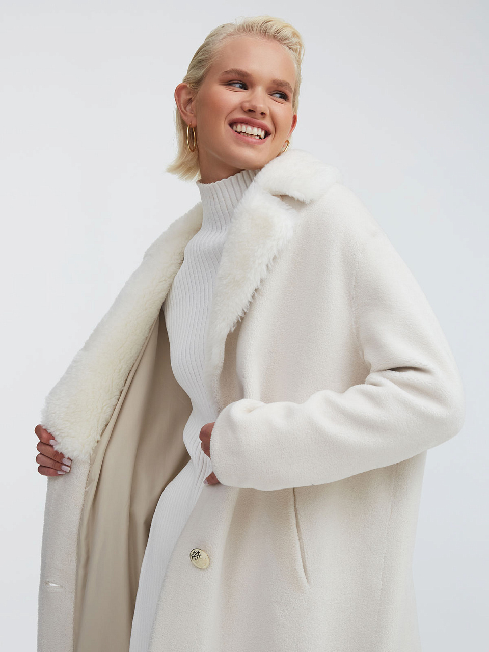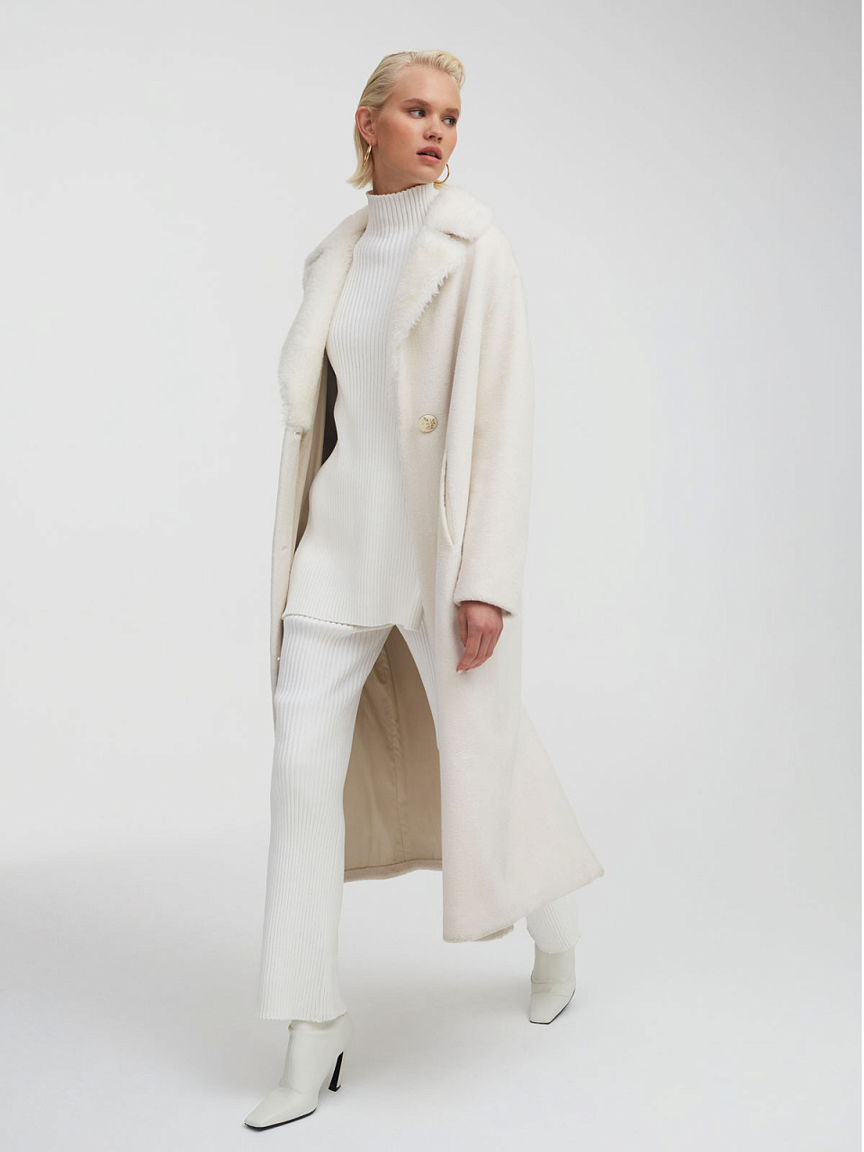 Белая шуба «Снегурочка» – самая нежная модель в премиальной коллекции Romanoff с очень деликатной обработкой экомеха, который аккуратно подстригается. Изделие отличается фирменным, выверенным годами фасоном MILAMARSEL.