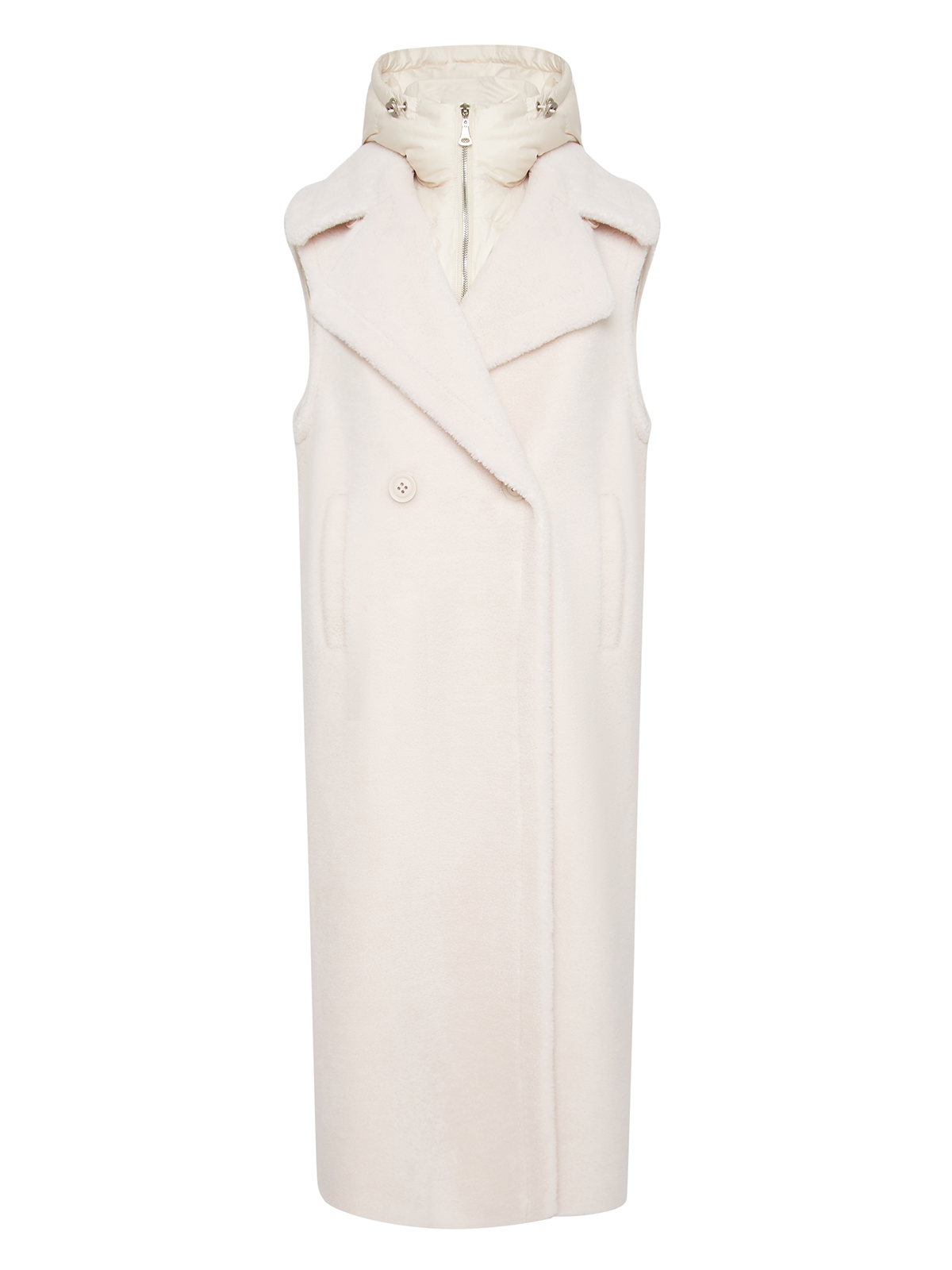 Знаковое творение премиальной коллекции Romanoff, совмещающее в себе русские традиции и высочайший уровень технологичности. Экошуба-трансформер, в которой соединились элементы пухового пальто и русской шубы. К меховому жилету внутри пристегивается специальная манишка с капюшоном и рукавами, которые могут отстегиваться.