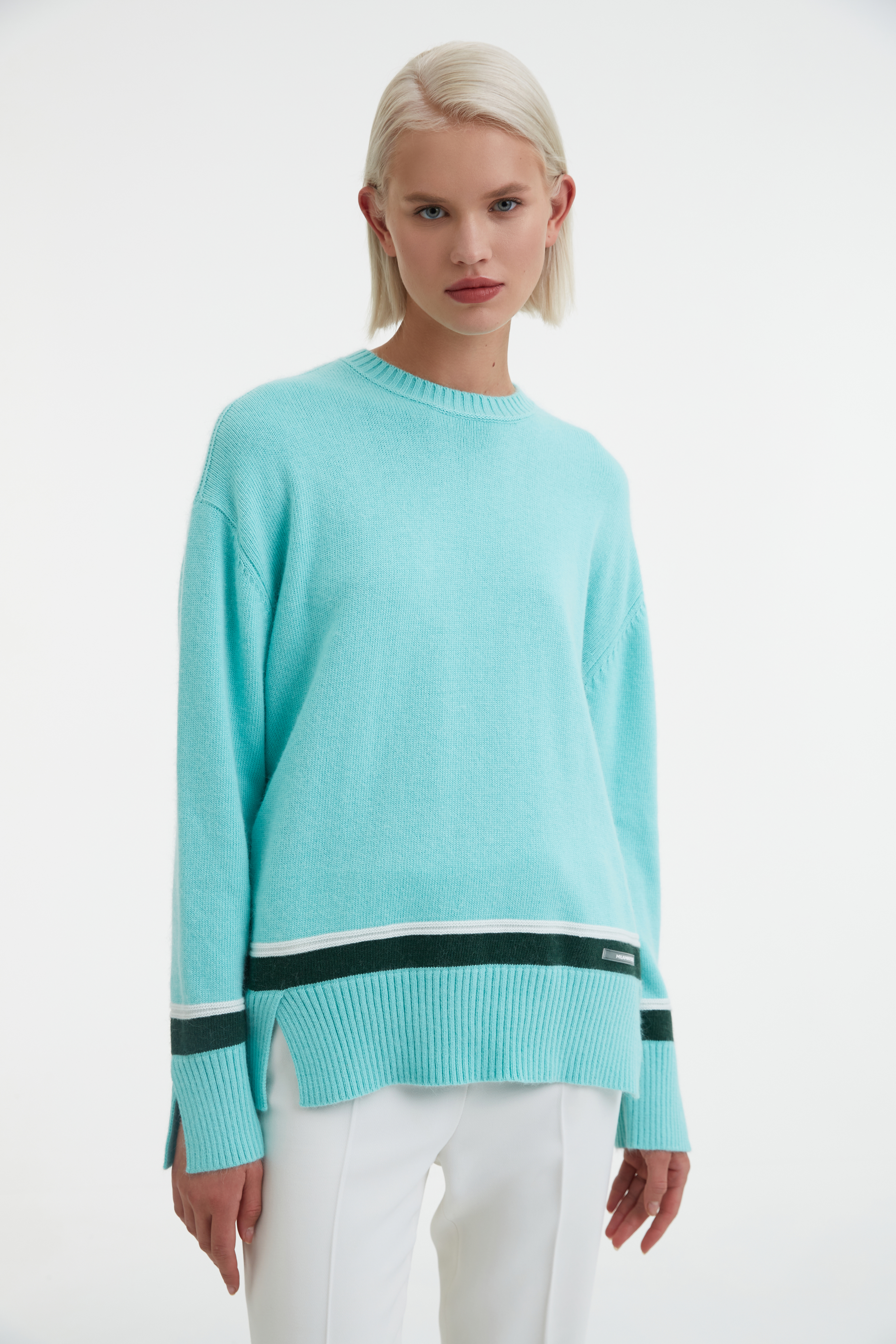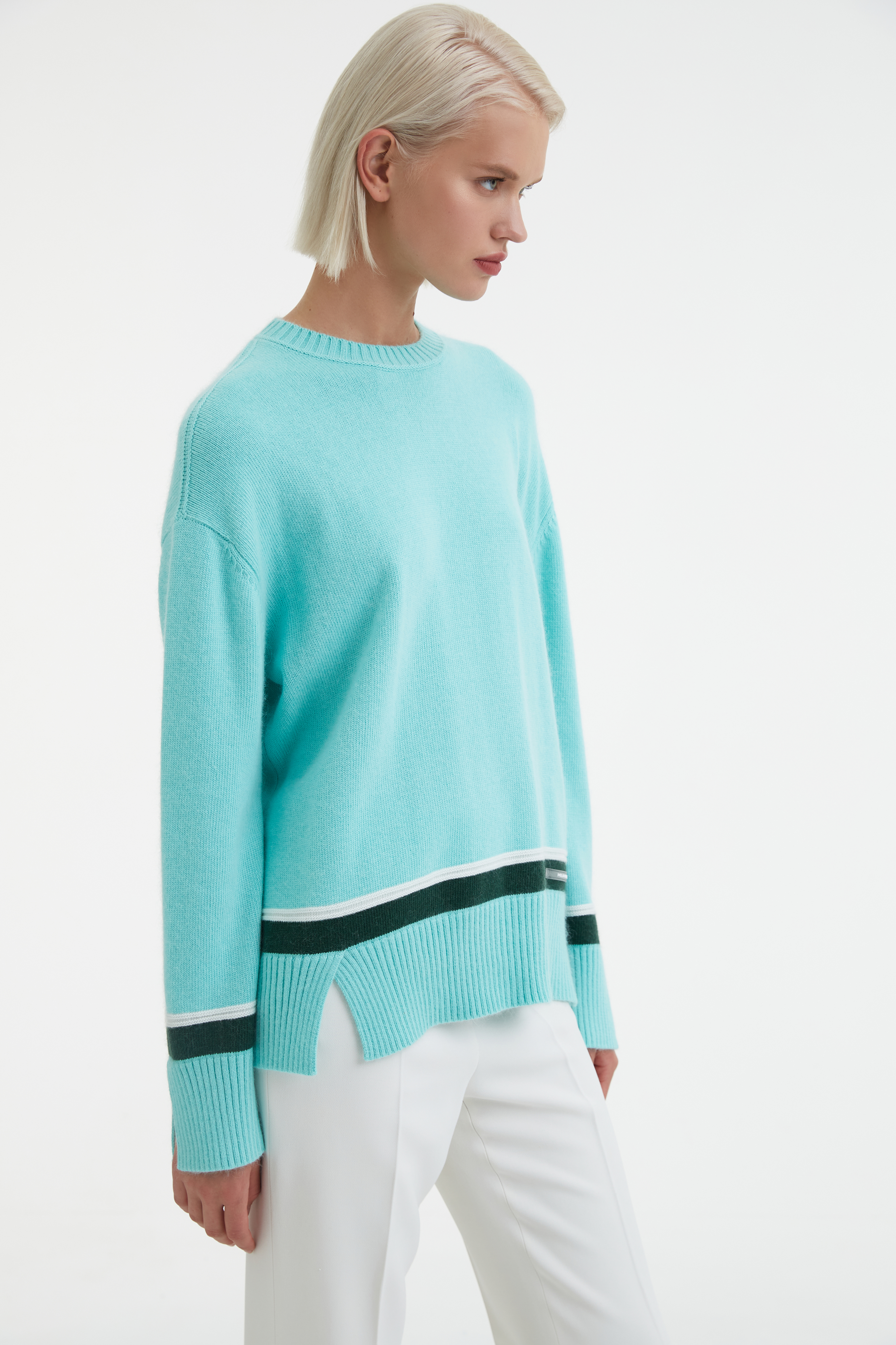 Свитер мятного цвета.