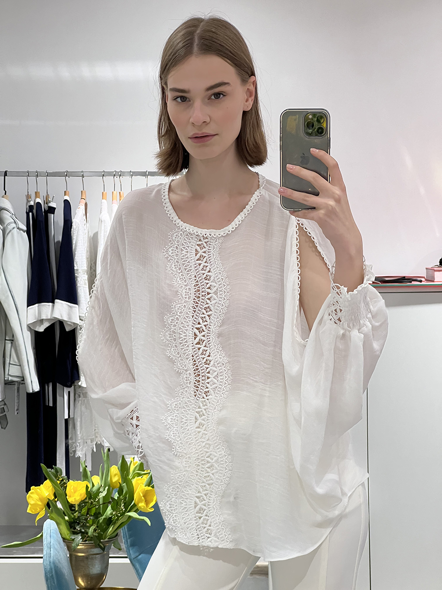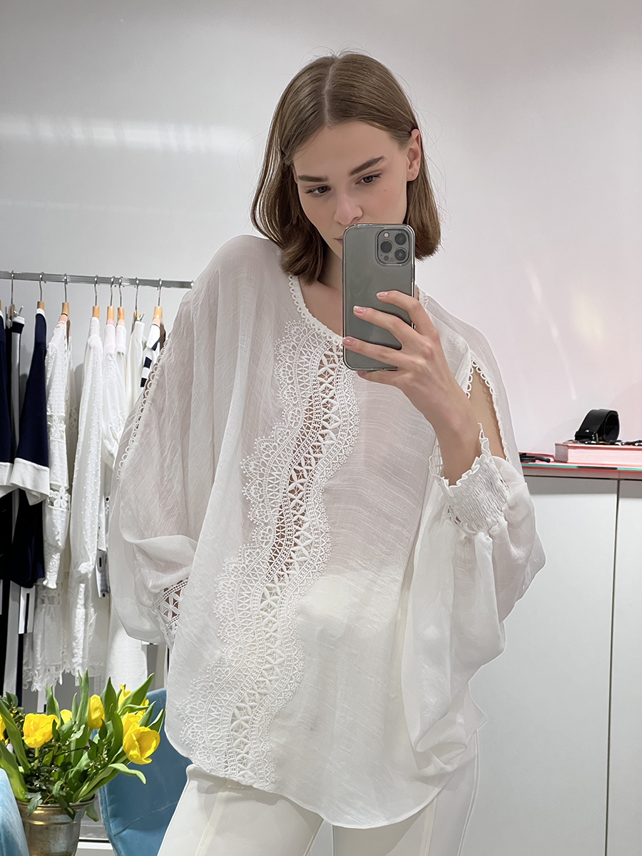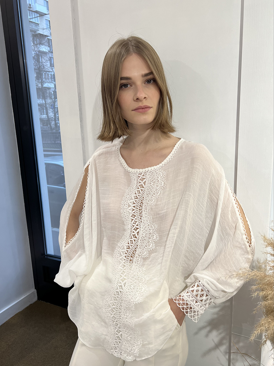Кружевная блуза с длинным рукавом.