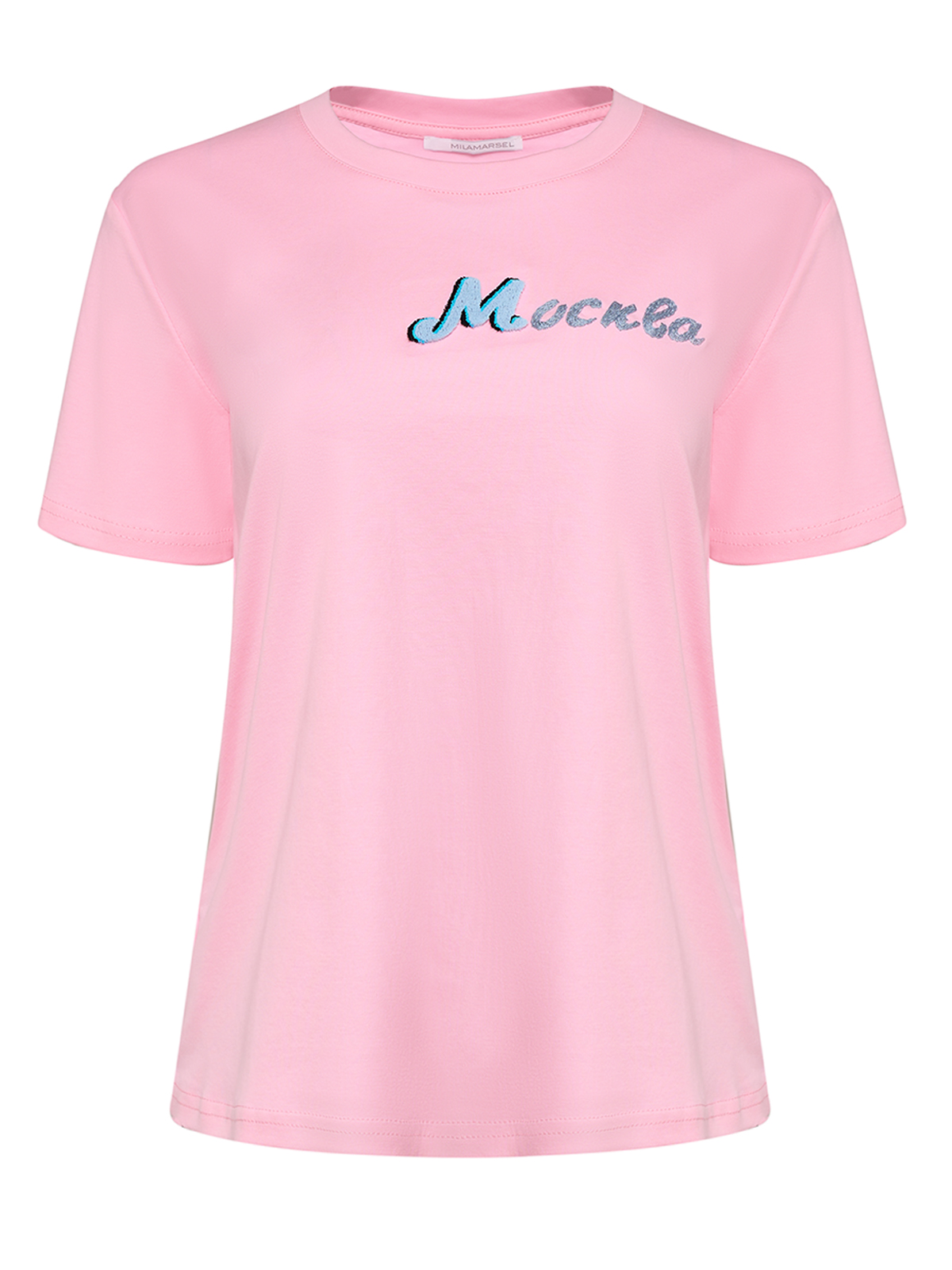 Розовая футболка с надписью "Москва".