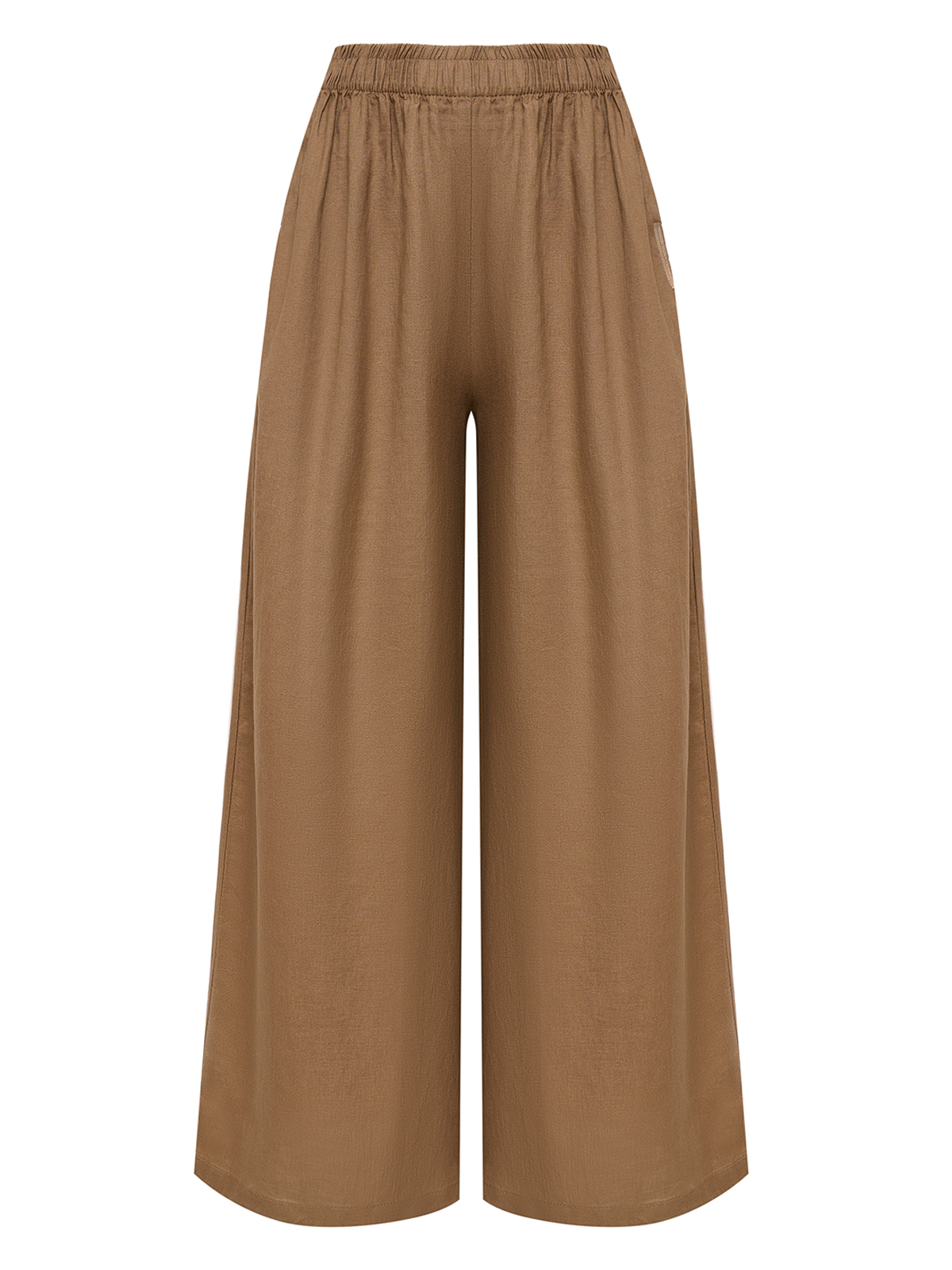 Широкие брюки бежевого цвета.
