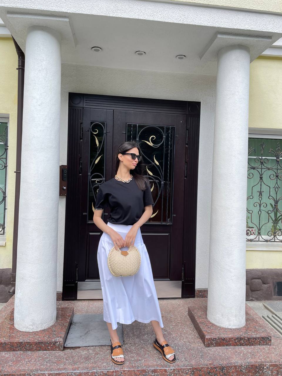 Классическая белая юбка длины миди.