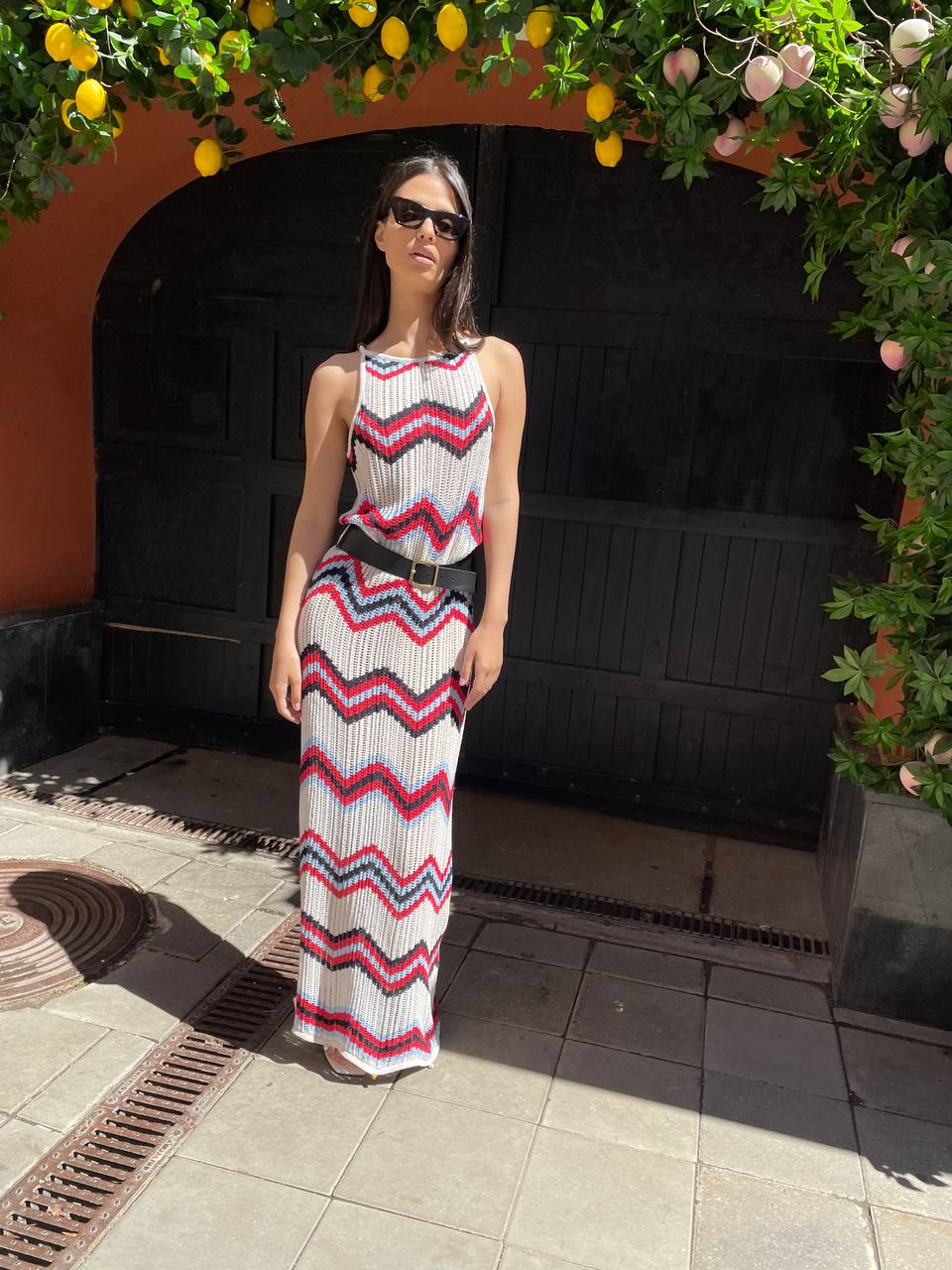 Платье длины миди с геометричным принтом.