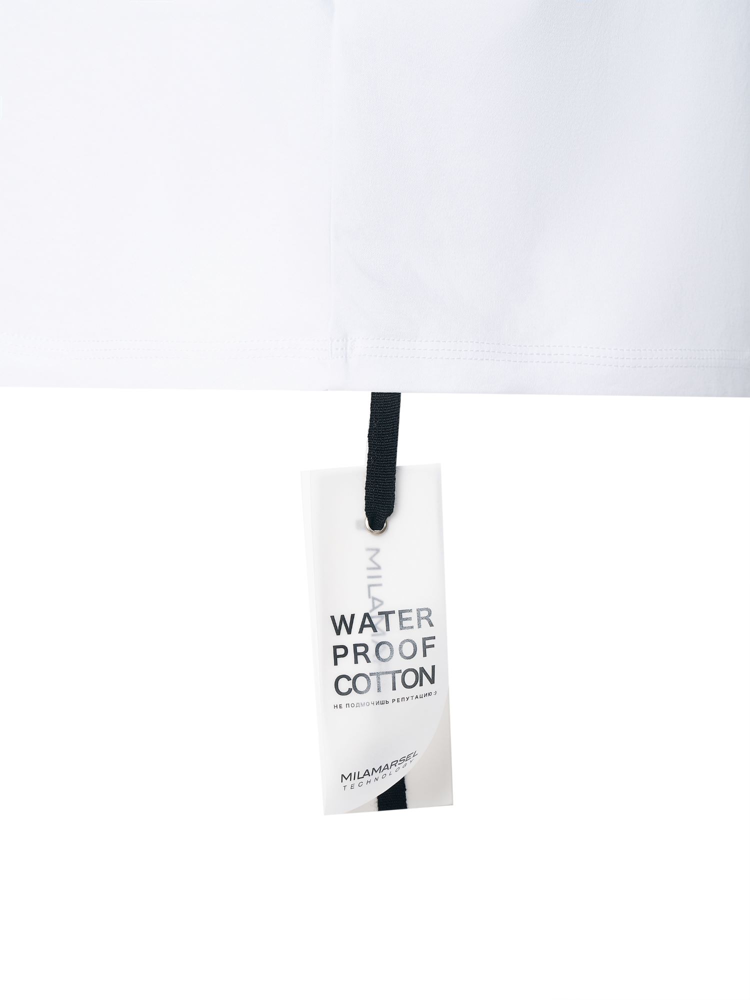 Водоотталкивающая футболка из 100% хлопка. Благодаря особой инновационной технологии переплетения нитей, хлопковое полотно не дает воде проникать внутрь, и жидкость просто скользит по поверхности.