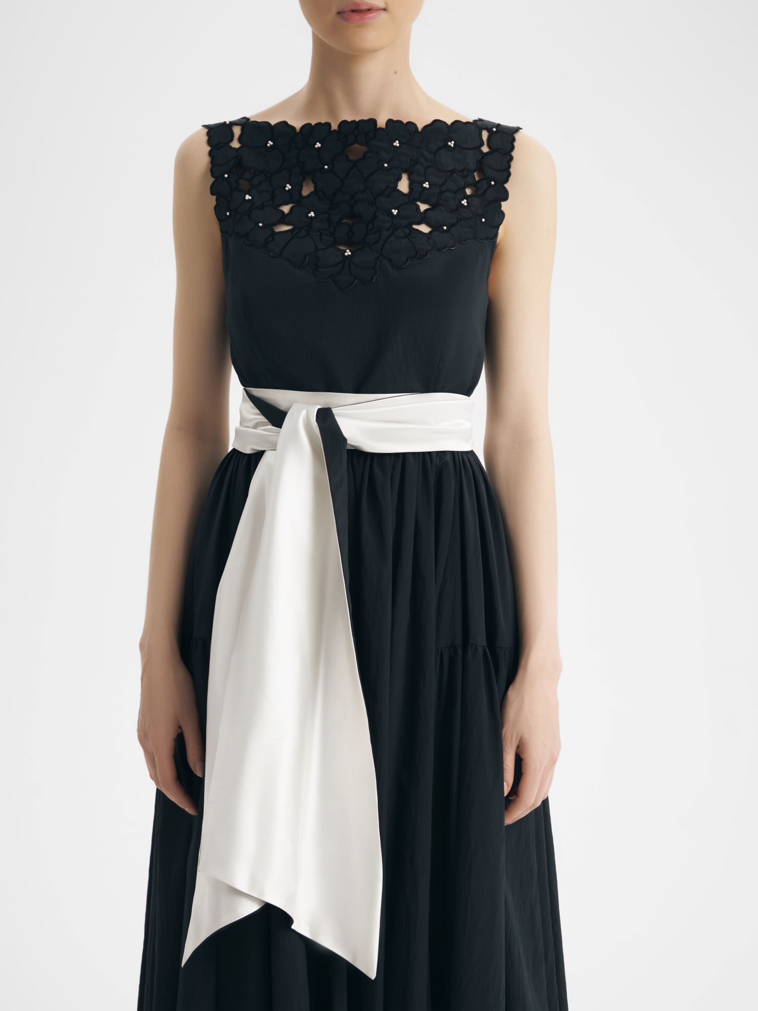 - Платье "Миша" — это сочетание романтики и изысканности. Верх с кружевными деталями и декором добавляет утонченности, а контрастный пояс подчеркивает талию и создает стильный акцент. Легкая юбка придает платью воздушность и элегантность. Отличный выбор для особых случаев, где требуется выглядеть великолепно и привлекательно.