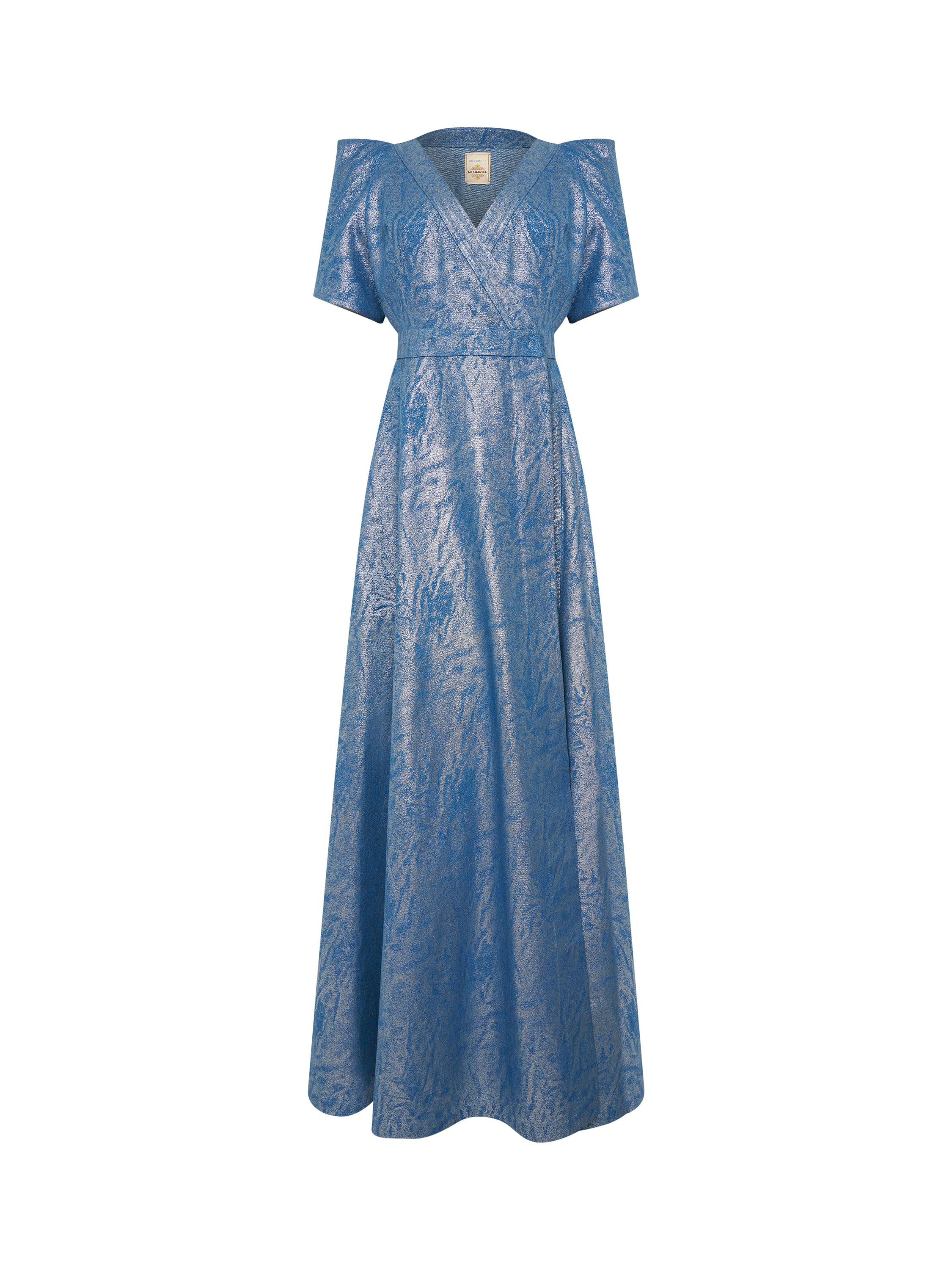 - Платье САВАННА из металлизированного денима в цвете shining blue (в золотисто-голубом цвете). Структурная ткань и крой формирует скульптурный силуэт