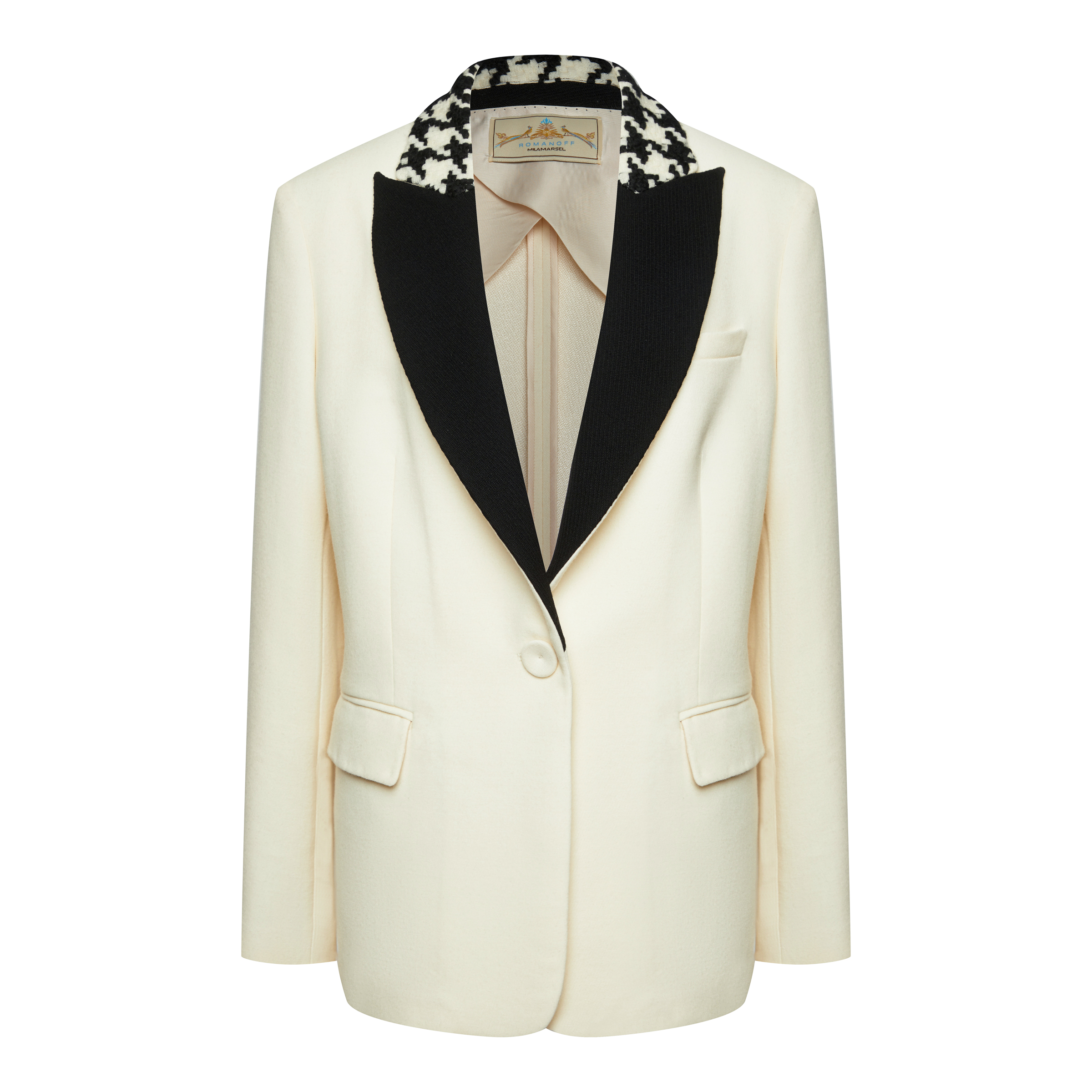 - Жакет от "Ателье Милана" — изысканное сочетание классики и современности с контрастным воротником, подчеркивающим стиль и утонченность. Идеально подходит для создания элегантного образа.