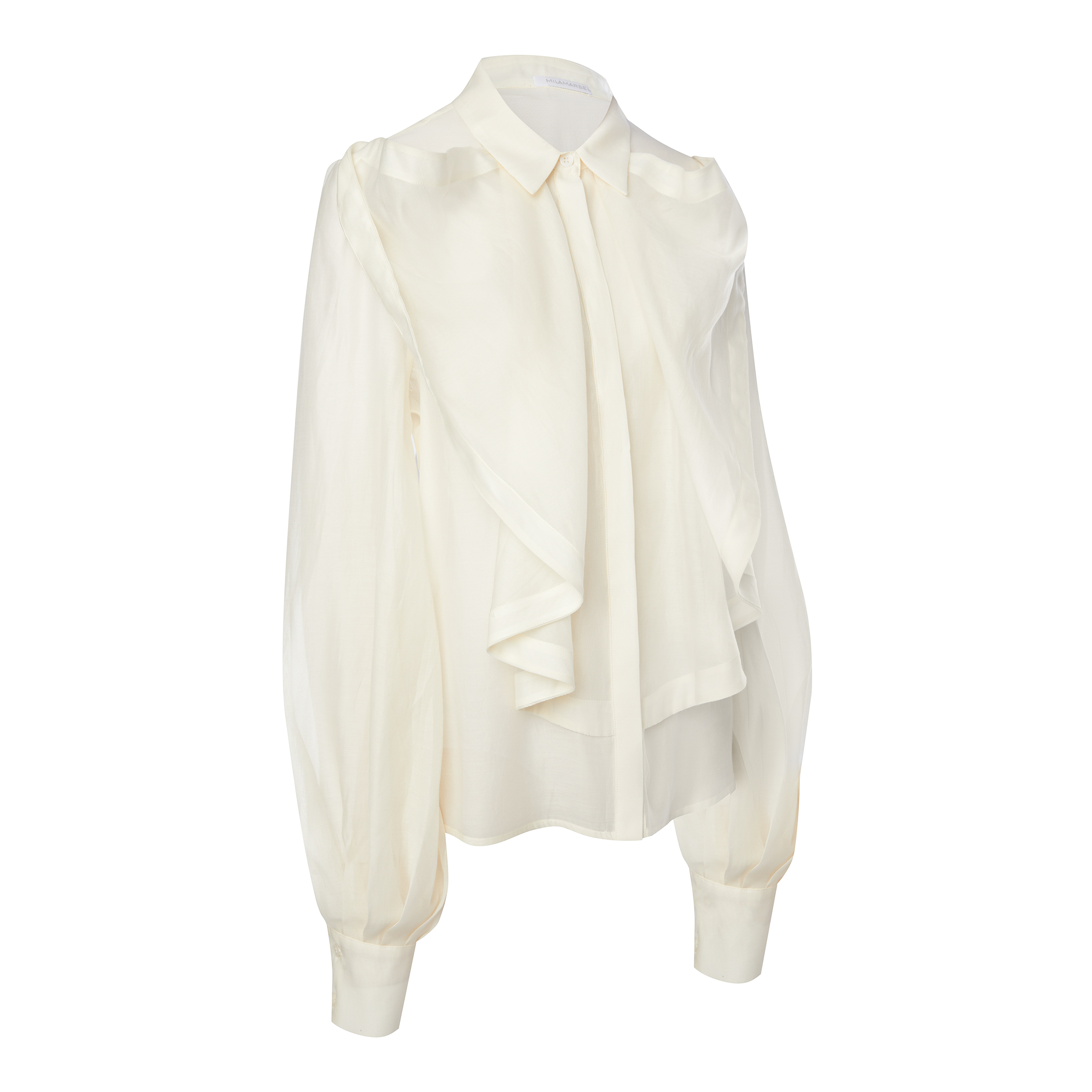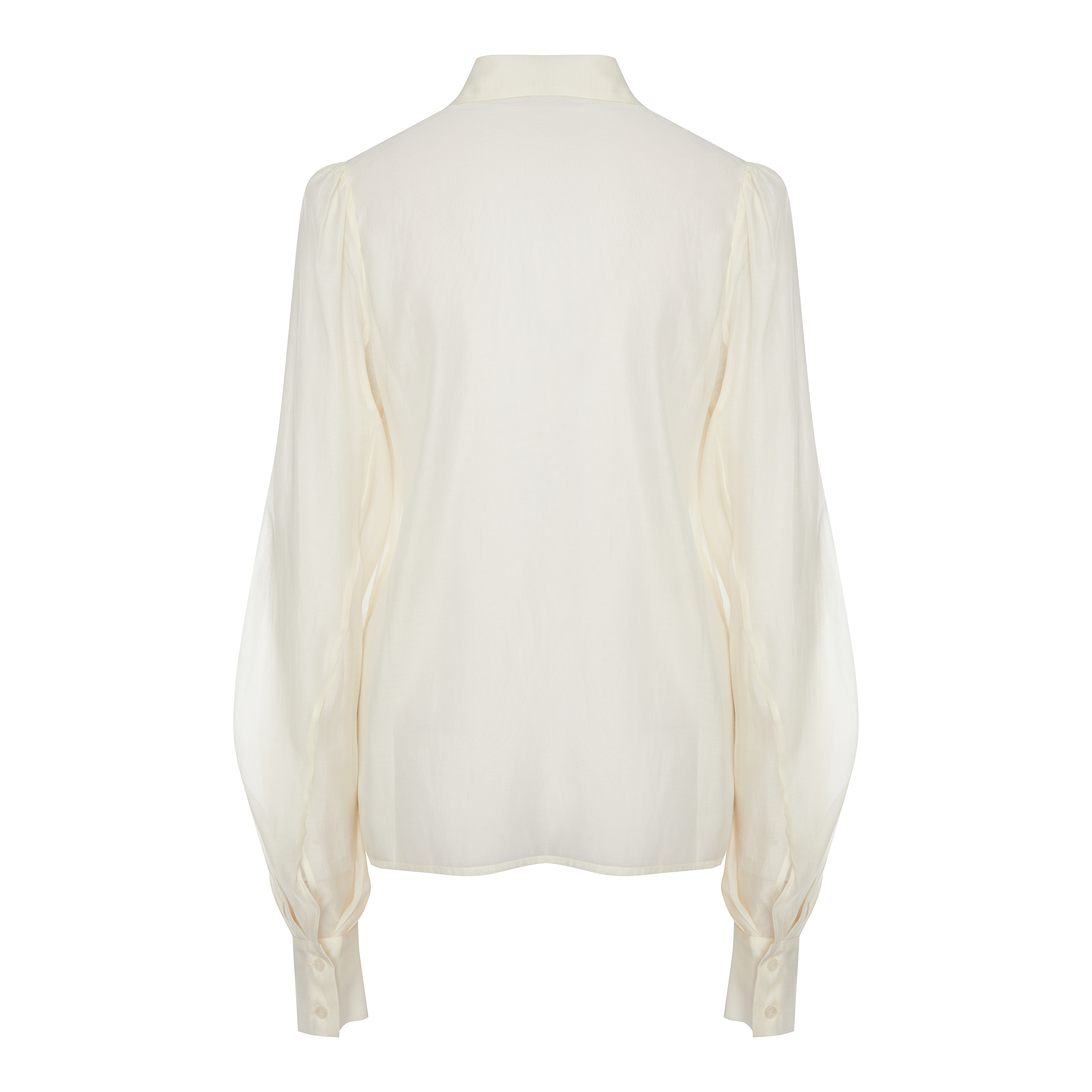 - Молочная блуза «Алина» из 100% шелка станет изысканным акцентом в гардеробе. Нежная ткань струится по силуэту, создавая ощущение лёгкости и утончённости. Объёмные рукава с широкими манжетами добавляют образу динамики, а фигурные воланы спереди придают романтичный характер и мягко подчеркивают женственность. В сочетании с лаконичными брюками или юбкой блуза подходит как для офисного образа, так и для вечернего выхода.